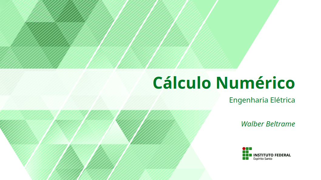 Nesta sala, iremos aprender sobre a disciplina de Cálculo Numérico. Serão estudados algoritmos de programação aplicado ao cálculo numérico. Erros. Zeros de funções reais. Resolução de sistemas lineares. Resolução de sistemas não lineares. Ajuste de curvas. Interpolação polinomial. Integração numérica. Resolução numérica de equações diferenciais ordinárias.