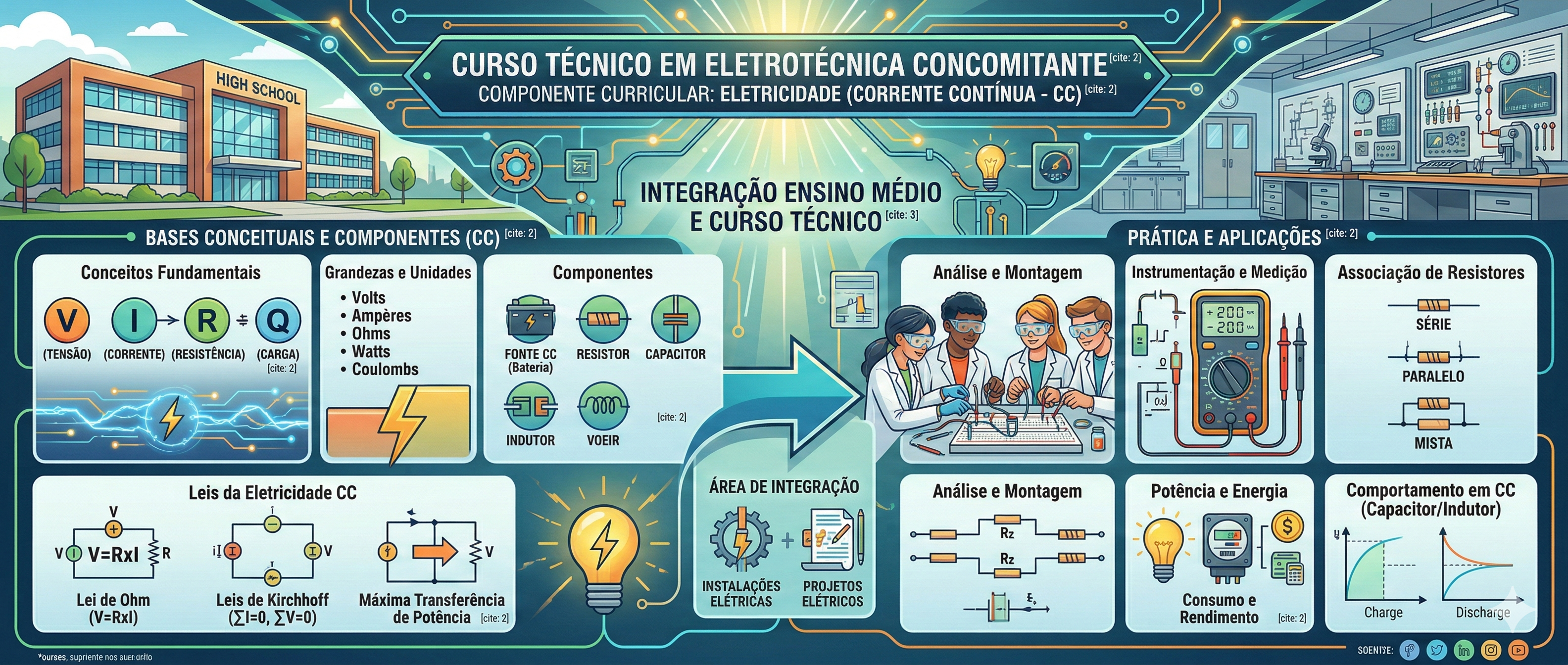 O nosso objetivo aqui não é apenas decorar fórmulas matemáticas. A matemática será nossa ferramenta, mas o nosso foco real é compreender a física e a tecnologia por trás dos circuitos. Nós vamos começar do zero absoluto, estudando os circuitos de Corrente Contínua (CC)